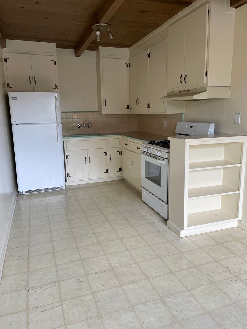 Kitchen with and ample cabinet storage, carport.