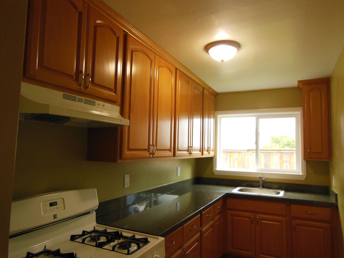 Large kitchen with granite counter tops and ample cabinet storage